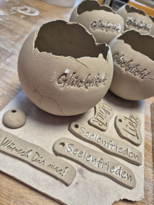 Am ersten Termin sind 2 Stunden Zeit, nach Herzenslaune zu töpfern. Nun müssen die Sachen trocknen und werden von mir gebrannt.